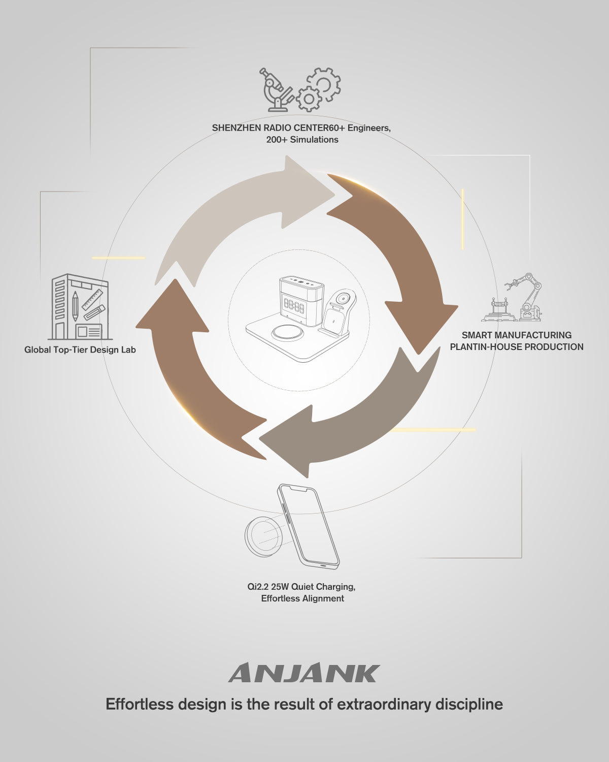 ANJANK is dedicated to elevating wireless charging from a cluttered necessity into an aesthetic experience that restores order and peace to your life.